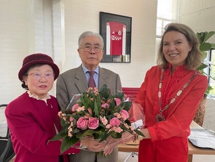 Vorige week ontving burgemeester Susanne de Roy van Zuidewijn op het gemeentehuis mevrouw Song Chang-joo en haar echtgenoot Lee Kee-hang. Het echtpaar, oorspronkelijk uit Korea, woont al jaren in Ouder-Amstel. Hun komst leidde naar een bijzondere vriendschap met een echtpaar uit Amstelveen, dat hen destijds hielp met de start van een leven in Nederland. Nog altijd is het stel bevriend. Het Amstelveense koppel mocht daarom ook niet ontbreken bij de viering van hun diamanten huwelijksjubileum.