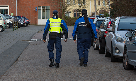 Foto: Twee boa’s lopen in de wijk. Een boa is een buitengewoon opsporingsambtenaar en helpt de politie bij het opsporen van strafbare feiten en mag regels handhaven.