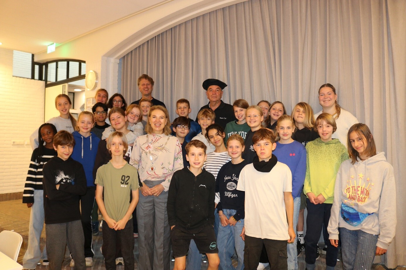 Foto: Leerlingen van groep 8 van de Jan Hekmanschool in het gemeentehuis van Ouder-Amstel.