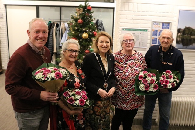 Vier inwoners van Ouder Amstel zijn tijdens de nieuwjaarsreceptie van de gemeente door burgemeester Susanne de Roy van Zuidewijn verrast met de Waarderingsspeld. De ontvangers waren met een smoes naar het gemeentehuis gelokt en wisten tot het moment van uitreiking van niets.